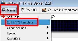 Emfim, eu baixei os arquivos solicitados acima, e comecei o passo-a-passo, porem na primeira etapa onde "Edit HTML Template", o meu HFS naum tem essa opção...