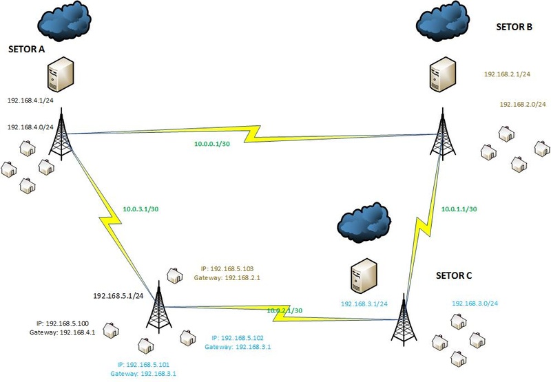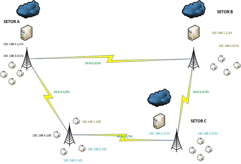 rogeriodj, a grande questao ai como na figura.. (se a rede toda vai estar roteada em OSPF) entao nesse cliente dessa torre q nao tem link eu teria q criar uma faixa pra o cliente se comunicar com a torre... (certo?) se fosse so um gateway ai ele automaticamente pegaria esse gateway.. mas nesse caso ai... como fazer pra esse cliente falar com o seu gateway especifico?