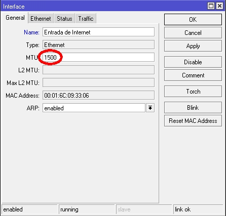 Outra coisa tambem, deve-se reduzir o MTU de entrada, em alguns casos o MTU é importante, veja a figura abaixo e veja como está no meu link: