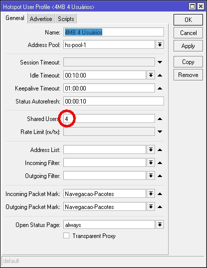 Re: como liberar a banda para 04 clientes usando o mesmo login??