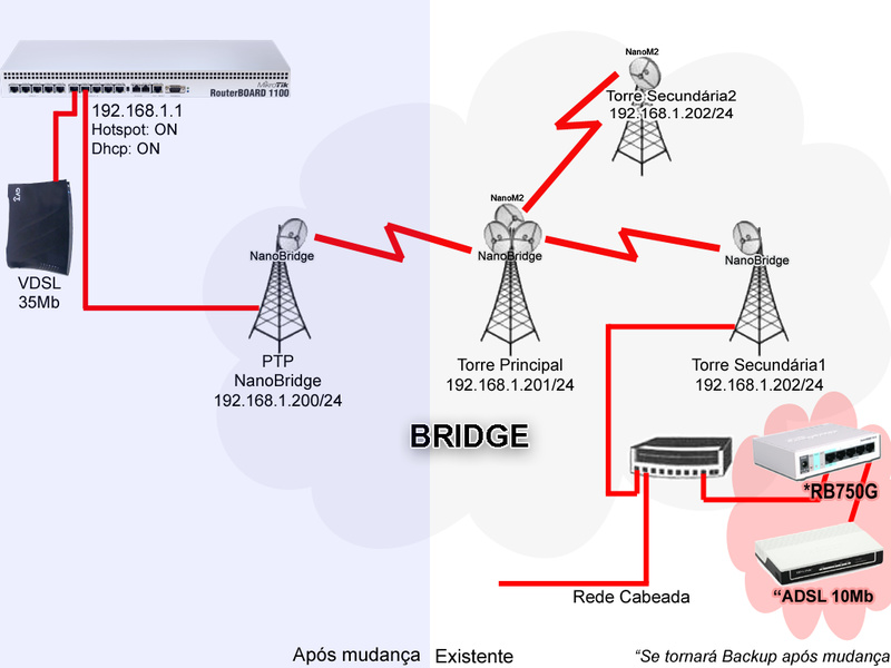 Pergunta simples: Imagine uma rede bridge com mikrotik autenticando o modem, fornecendo dhcp e hotspot.