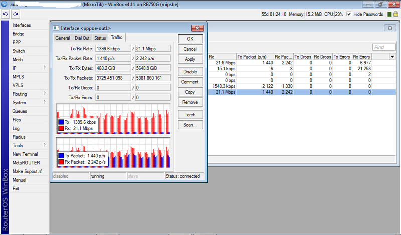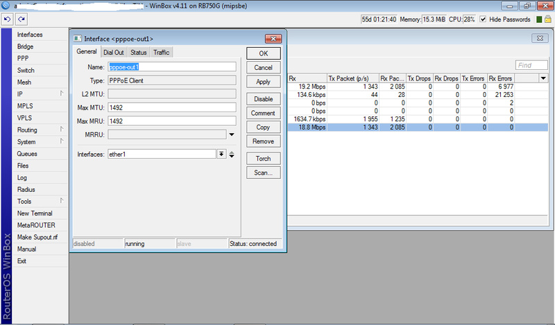 Boa noite amigo posta sua comfiguraçoes do discador pppoe no mikrotik tenta mudar o mtu para 1492