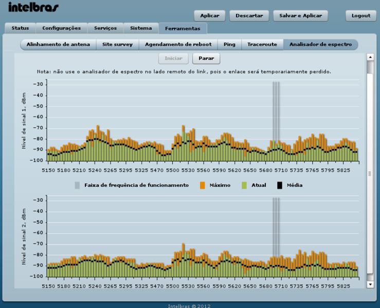 Os testes foram feitos com antenas alinhadas. Haja vista que a intenção do teste era medir a performance dos equipamentos.