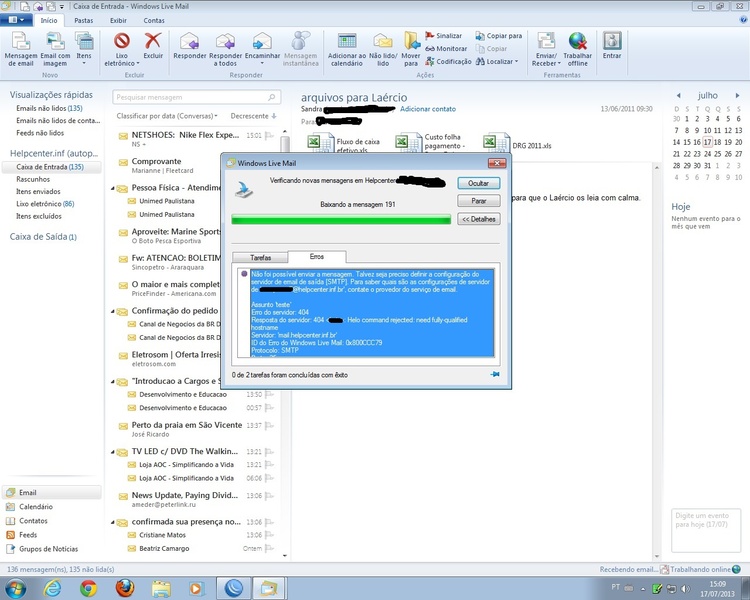 Um cliente que temos, ele tem uma RB750gl configurado o balanceador de 2 links (nosso via Rádio e speedy) e ele usa o outlook 2007 e live mail, quando ele envia e-mail se o speedy estiver habilitado na RB da um erro 404 nos dois progamas (live mail e outlook) erro que ele recebe os e-mails e nao envia, ai ele tem que desabilitar o Speedy ai envia normalmente.