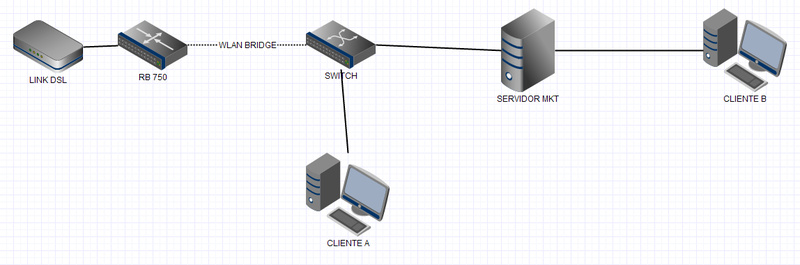 Os redirects que tô fazendo são basicamente na RB750 redirecionando a porta pra o servidor MKT, e o servidor MKT redirecionando a mesma porta pro ip do cliente: