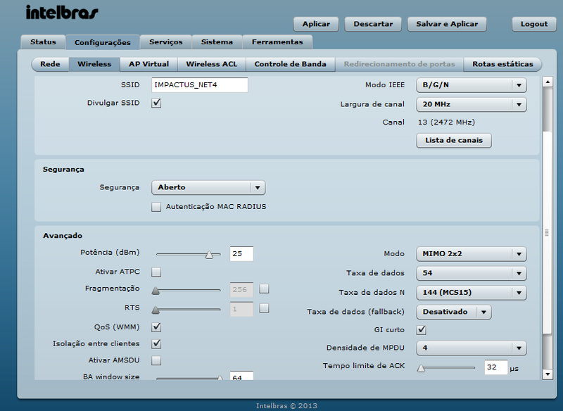- ATPC. (Esta opção regula a potência do rádio automaticamente. Você pode testar a conexão com esta opção desativada )