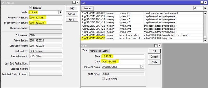 Olá amigos, atualizei meu MK para o 6.2, porem a hora esta correta, mas oq aparece nos log´s ta errada, alguem ja passou por isso? Segue print da configuração.