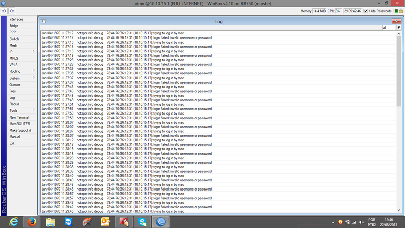 Ola pessoal, preciso de uma ajuda de vocês. Minha rede roda hotspot e estou atendendo uma nova empresa com o ip e mac registrados no IP Bindings, para nao cair na tela de login. A internet esta chegando normalmente na empresa, so que de uma hora pra outra a internet cai e so reiniciando o ap para voltar. Ja troquei cabo, ap, conectores, antena.... tudo... E aparece um log estranho no MK, tentativa de autenticação do mac so que com ip diferente do cadastrado no Bindings.