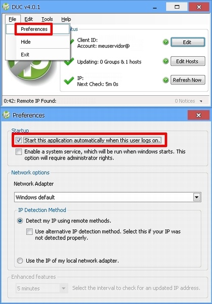 PS: não sei se foi impressão minha... mas depois que executei o aplicativo DUC, eu consegui acesso remoto. Não tem como fazer o scrpit funcionar sem precisar rodar toda vez esse programa como se fazia Change IP? O script não deveria fazer isso sozinho?