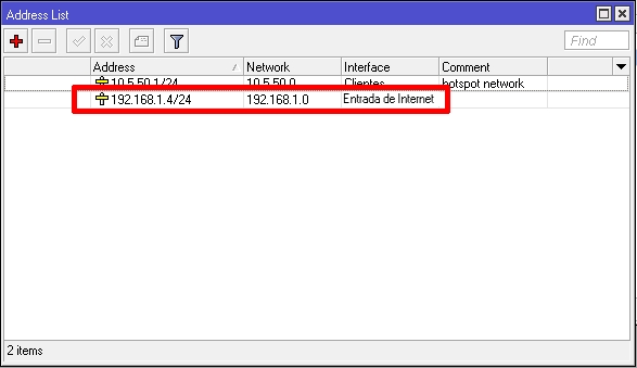 • Vá em IP>Addresses e veja o IP, o IP pode variar dependendo de como foi configurado o seu Mikrotik