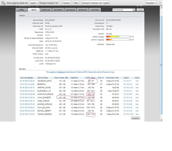 .Vi que de 11 clientes conectados , pelo menos 4 clientes precisam melhorar o sinal.