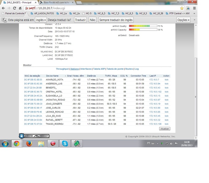Obrigado Cristiano, alterei a banda para 20 MHz e experimentei outros canais, ate que este deu uma boa estabilizada, porem alguns cliente que estao mais proximos a base ainda nao estao 100%, deixarei para experimentar o resto dos canais a noite pois temos empresas nesta base, e se eu ficar mexendo durante o horario comercial ele nao gostarao.