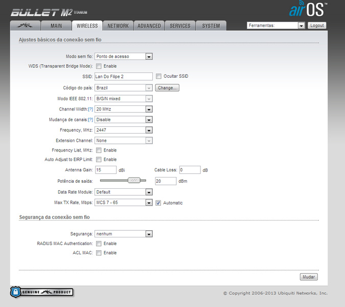 porem a maior parte dos clientes não conseguiu ver a rede neste canal, passei por todos os canais, e o problema persiste. Após a troca da antena em especial o ping ficou melhor, cerca de 50ms na maior parte do tempo, mas tem altas de 150~200 algumas vezes. perda de 6~10% algumas vezes.