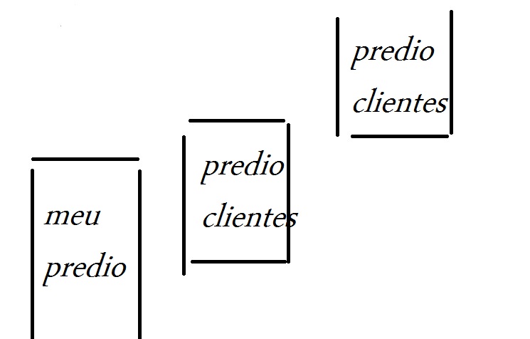 sao dois predios,oque eu moro e o da frente,ambos do mesmo dono,o meu predio tem speedy porem tem um conjunto de 5 predios que foram construidos a tres anos atras (estes sao predios CDHU) e ainda nao tem nem fiaçao para telefone , segundo a vivo ela nao entra no predio pois é uma area de risco , ja conversei varias vezes com ambos os sindicos dos predios sobre fazer uma rede de internet para atender o predio , bem sao 5 predios com 30 apartamentos cada , esta foto mosta os predios por cima e segunda mostra os predios visto pela lateral