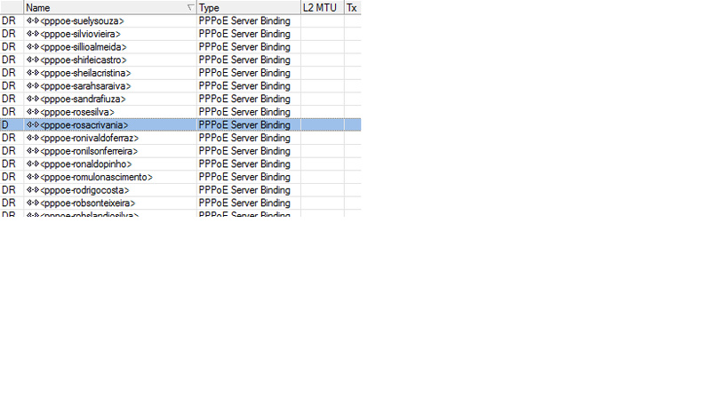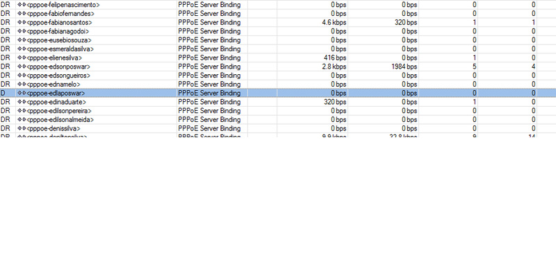 Caros amigos, no meu servidor em PPP>Interface> os clientes conectados ficam com o DR (Dynamic,Run), mas um ou dois clientes ficam somente com D, dai eles não navegam, e o pior e que nunca são os mesmos clientes, a coisa fica alternando, percebi que isso so acontece nos clientes que trabalham com radios 2.4, alguem pode me dar uma ajuda?