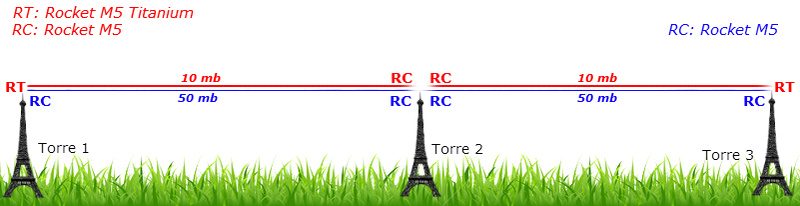 Então estou com o seguinte problema, tenho um ponto a ponto feito com 4 Rocket M5 mandando da Torre 1 para a Torre 2 e da Torre 2 para Torre 3, esse está perfeito passando de 50 á 100 mb sem nenhum problema. Coloquei recentemente outro Ponto a Ponto da Torre 1 à Torre 3 utilizando o Rocket M5 Titanium, mas como a distância é elevada o só consegui 10 mb, então acrescentei 2 Rocket M5 na Torre 2 (que fica quase no meio entre uma e outra) Mas o resultado continua em 10 mb, não consigo fazer passa mais que isso, preciso que passe os 50 mb que a outra passa.