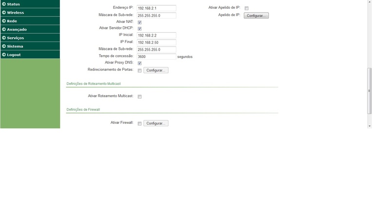 Configurei como Estação+WDS na "Wireless" e Roteador em "Rede" porque o cliente quer usar celular e tablet com um Roteador dentro de casa que está configurado em modo Bridge com DHCP desativado.