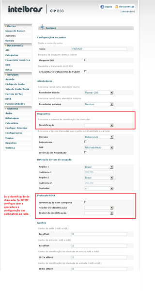 Acesse o menu Portas > Juntores > Selecione o seu juntor FXO.