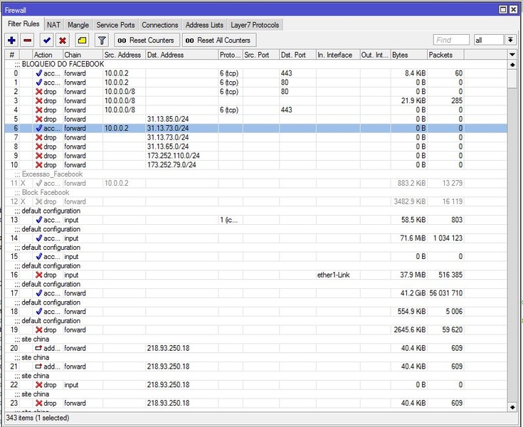 add action=accept chain=forward comment="BLOQUEIO DO FACEBOOK" disabled=no dst-port=443 layer7-protocol="Deny worktime" protocol=tcp \ src-address=192.168.137.12 src-port=""