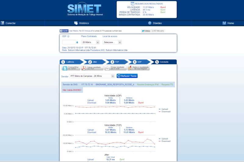 Minha conexão estava excelente - batendo os 20 MB contratados