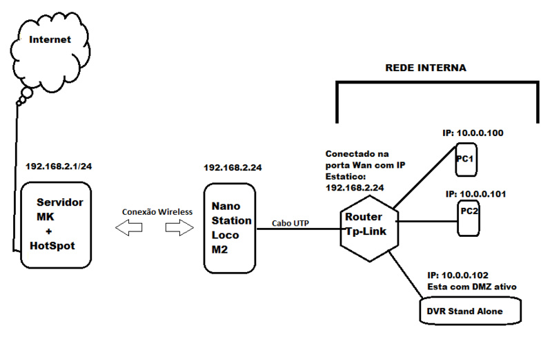 Abaixo esta um desenho da topologia da rede... Gostaria que alguém que já passou por esse problema me der uma força.Anexo 49728