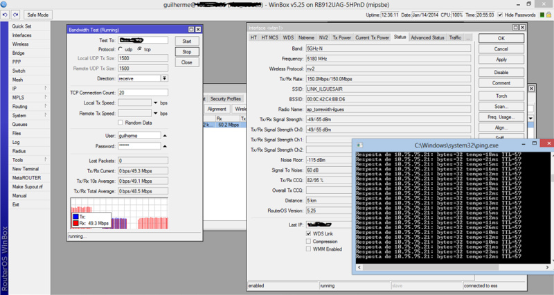 Bom, fiquei muito surpreendido com essas rbs 912uag. Levei o teste de bancada para as torres, que é um enlace de curta distancia, 4km, usando antenas da OIW de grade ainda, 1X1, enquanto as algcom não vem, hehe. Tem no print abaixo o resultado (faltou processamento).