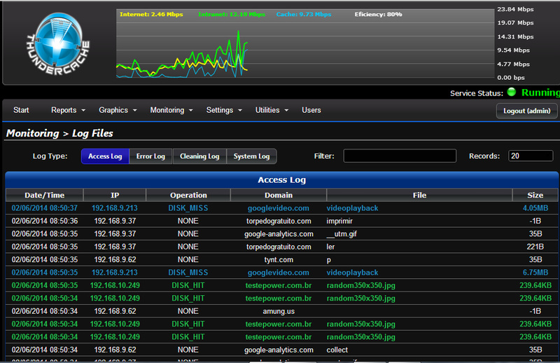Thundercache rodando num Servidor Dell 2950 com 7 Gb de ram.
