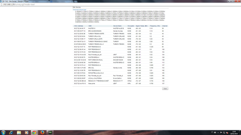 Segue uma imagem de uma nanostation como AP e outra como as interferências da região que ela está apontada. (Coloquei uma lata de zinco fazendo o papel de shild).