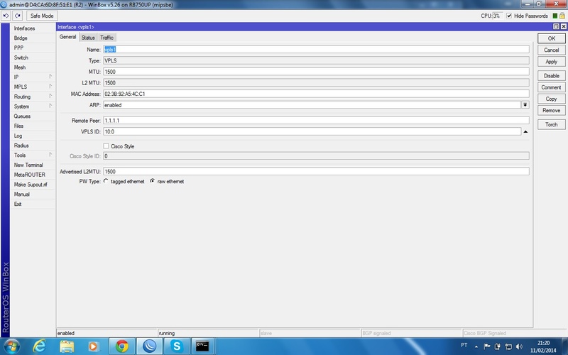 Qual o mtu que você está usando nas interfaces físicas? Ele de ser de pelo menos 1508 se você quer MPLS/VPLS.