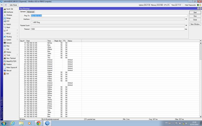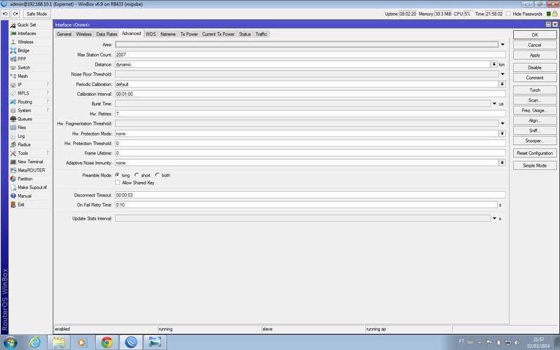 riNesse caso entao teria que setar em quantos mb?Sobre controle de banda ja havia feito os profile e tava funcionando blz, so a navegação hora tava boa , hora nao abria nada.E o maldito ping que fica toda hora na casa dos 900, 700 e companhia..Vou remarcar o data rate e ver o que acontece.Por que essa rb nao tem uma configuraçao defaut para pessoas como eu.O aprouter foi so alegria, é ligar e pendurar..ping nele 2,1,3 da gosto de ver.