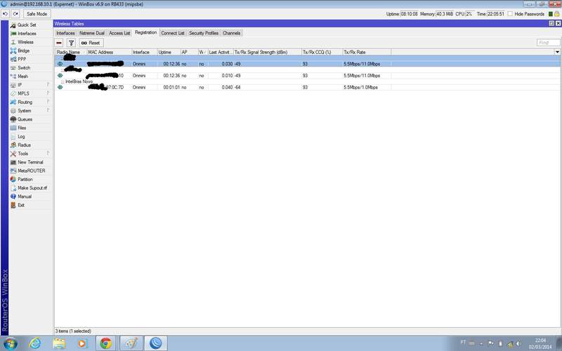 Tanto que já desistir de ter a RB 433 e o cartão XR2. Segue meu BO. Tinha um ap router com 20 clientes em uma onmini 12 dbi