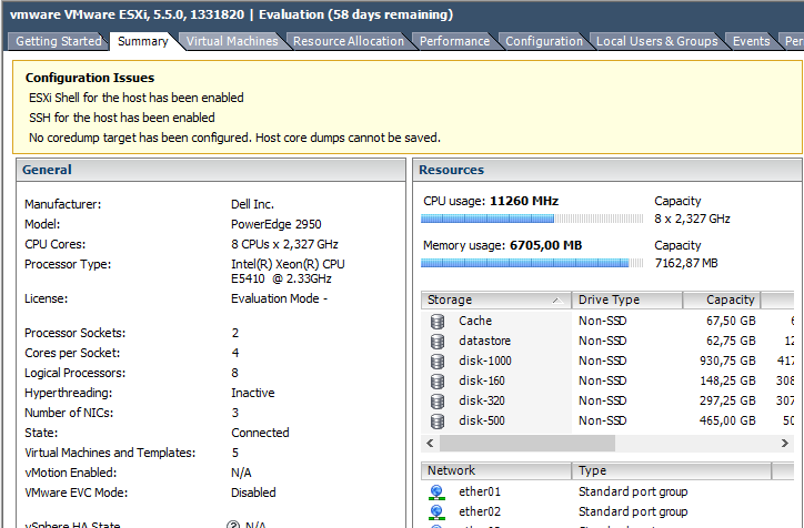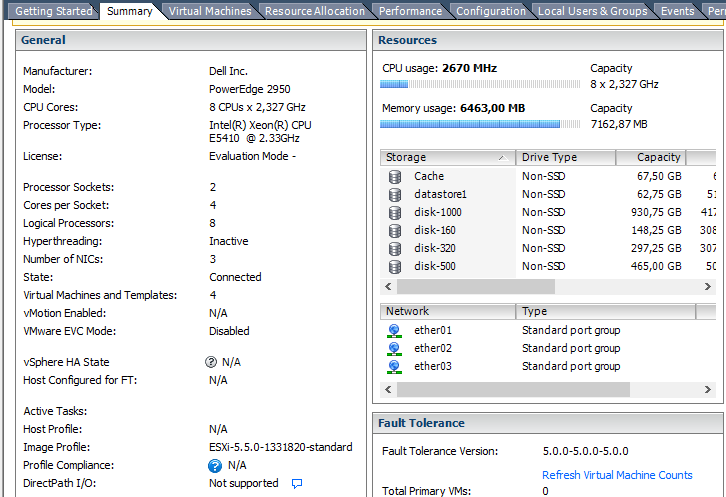Hoje tirei o dia para fazer alguns teste e aproveitei um servidor Dell 2950 que estava parado aqui e instalei nele o Vmware ESXI 5.5, o servidor tem a seguinte configuração de Hardware: