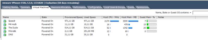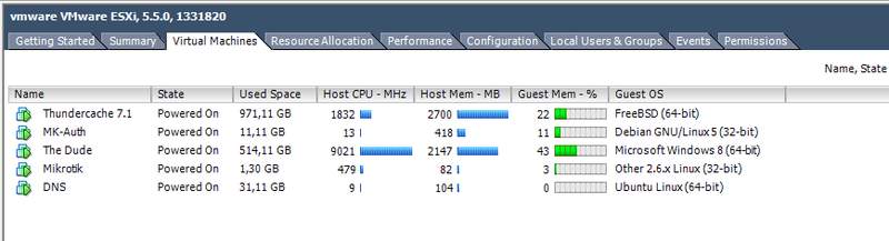 Usando o VSphere o desempenho foi diferente, eu conseguia uma grande carga de clientes em cada VM.