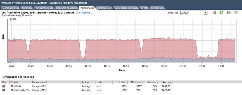 Só que quando eu ligava as 2 VM o desempenho se dividia, não em CPU, mas como se fosse um limite da placa de rede..