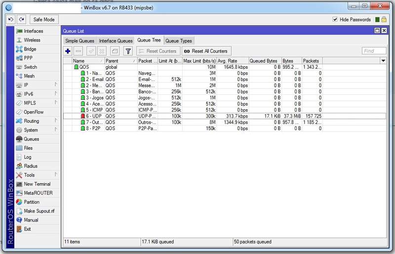 Depois disso era só partir para o Queues-Tree usando o esquema HTB tem uns conceitos importantes do David Marcony só está um pouco antigo a lógica do mesmo aplicado no Queues Tree pois foi feito em versões anteriores.