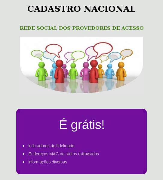 Da um brinde pra cada provedor pirada que se cadastrar e depois manda a lista pra ANATEL...