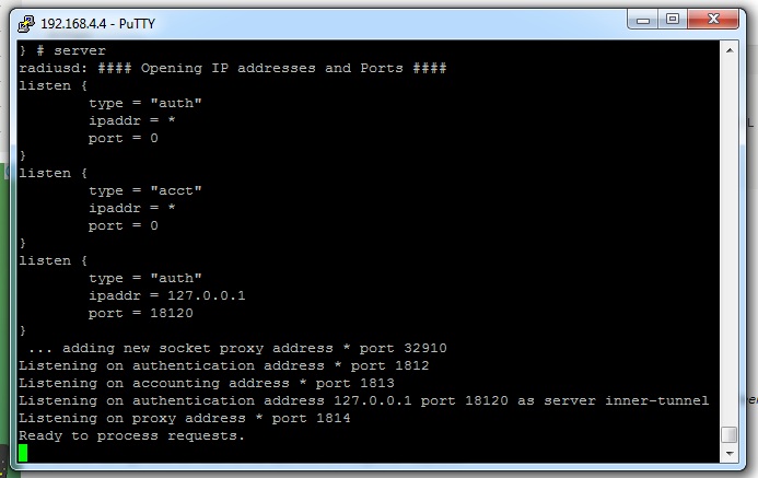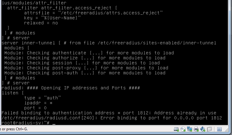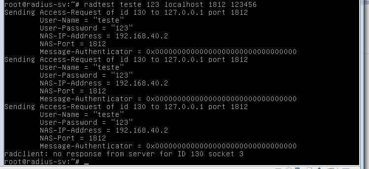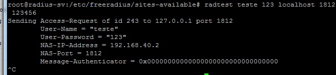 Quando faço o teste como "radtest" fica repetindo essa mensagem o tempo todo, o certo seria apareçer no final