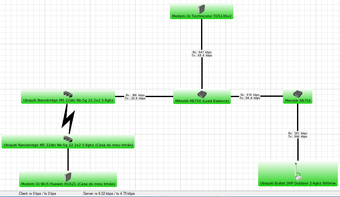Observe a imagem no load balance RX somou as duas taxas dos meus dois modem e TX fez a mesma coisa, porém quando passa pela minha RB750 o RX ta invertido com o TX...