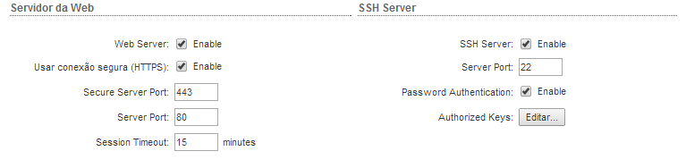 E em Services, certifique-se de habilitar o servidor Web ou SSH (dependendo do modo como quer acessar o equipamento: