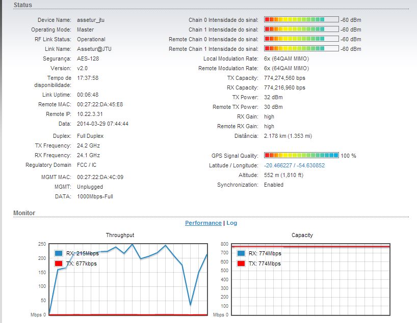 a potencia melhor que consegui o sinal foi assim, com uma em 32db e outra em 30db se eu diminuir muito fica muito fora o sinal e cai a taxa de transferência.