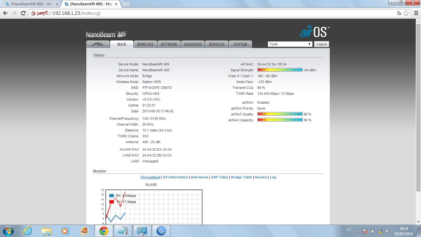 Galera, conseguimos fechar o enlance com 2 nano beam de 25 dbi, segue print...
