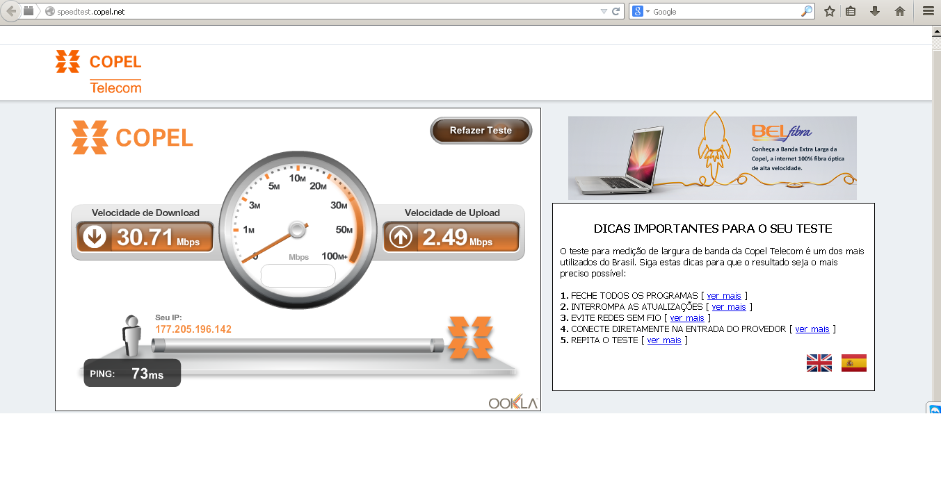 Não estou criticando seu enlace, se esta bom ou ruim. Este teste aí da copel não é valido pelo seguinte motivo. Primeiro ele testa a banda down e depois a up uma por vez.