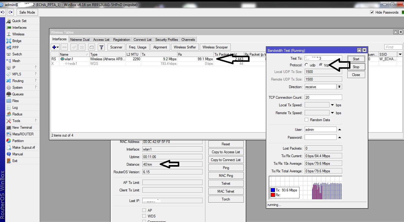 Um dos meus maiores links tem 44km, fechei inicialmente com sinal a -51, depois de uns dias foi para -55, não sei por qual motivo, talvez a antena saiu um pouco da posição. o Resultado é até 140MB half tentando down e Up em se falando em udp. Meu rádio tem porta giga, agora se tentar testar full udp a coisa muda pra cerca de 70MB full UDP, agora se tentar tcp half vai dar cerca de 80MB, agora tcp full cai para incríveis 40MB, acho que é isso que os amigos querem mencionar, já que em um provedor simultaneamente existem dezenas de pessoas com fazendo download outros upload, o tráfego tcp é infinitamente maior que o udp, portanto o que vale mesmo na pratica é o teste tcp full.