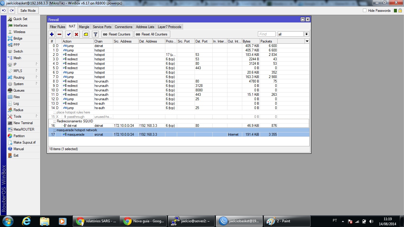 Vou reiniciar a RB e fazer uns testes de acesso pra gerar um relatório no sarg e ja lhe informo o resultado.