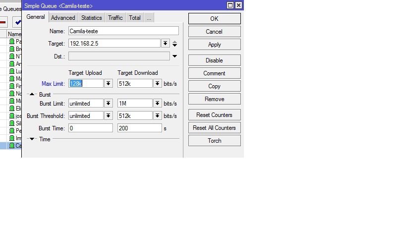 Funciona bem ,mais hj em um cliente a banda não estava passando ai eu modifiquei e coloquei sem limites e passou os 2 megafull , voltei a configuração e não passou , gostaria de saber se alguém sabe o motivo.