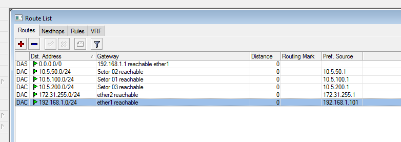 Então pergunto: devo configurar uma rota no MK para redirecionar e interligar o tráfego da rede. Como?