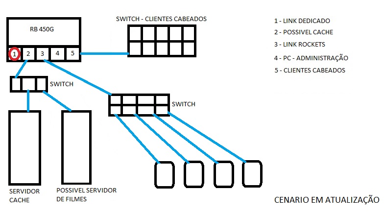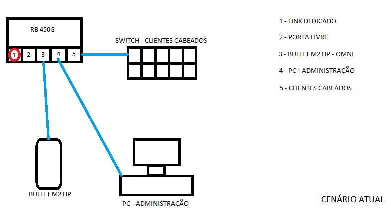 Hoje possuo uma RB 450G recebendo meu link dedicado, repasso pela porta 5 para um switch e dai para clientes cabeados, geralmente vizinhos de parede com autenticação PPPoE.