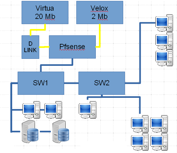 Bom dia galera. Estou encontrando um problema para rodar um firewall/proxy com duas wans em failover, como na figura abaixo: