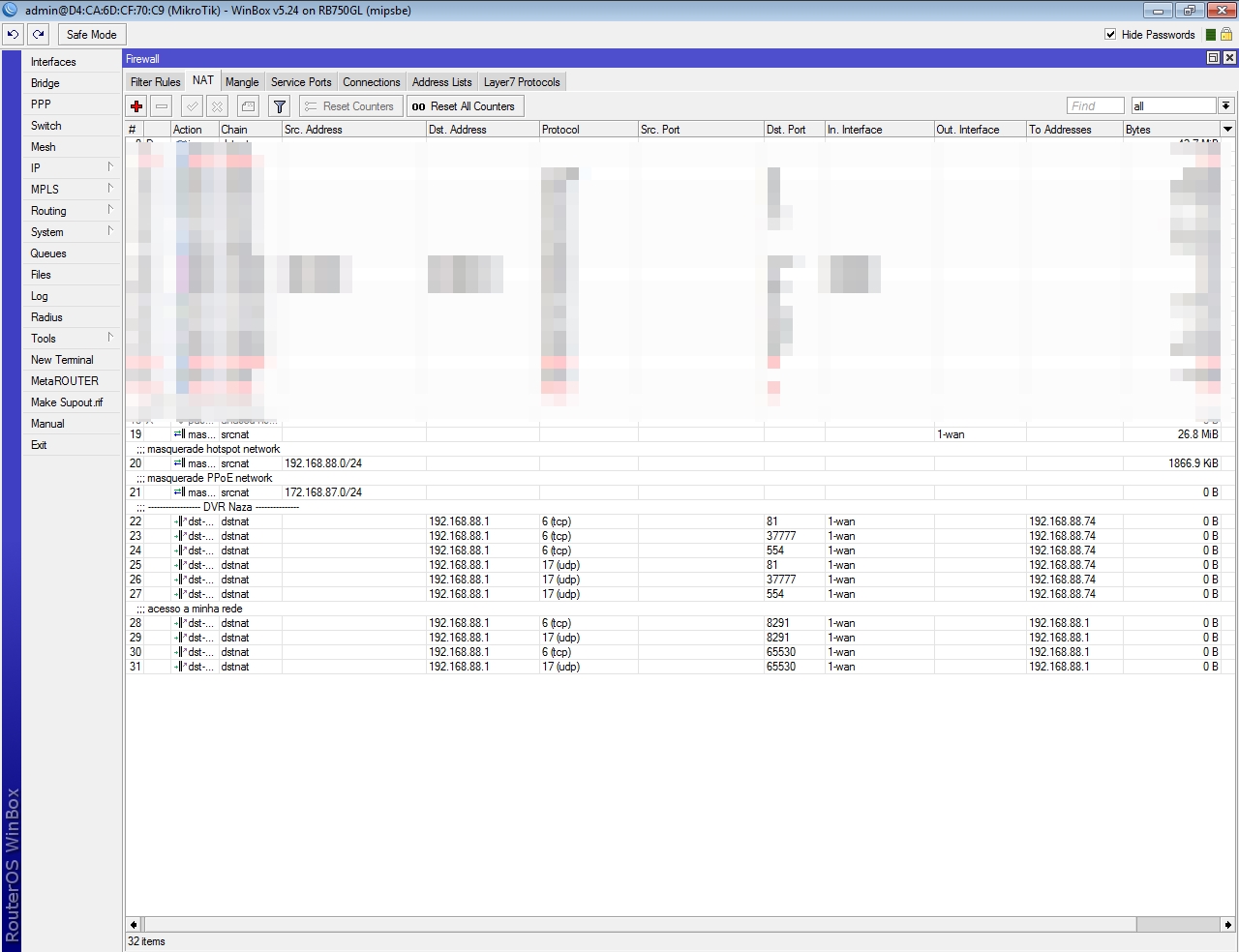 Olá pessoal! estou com de portas, só que aqui esta tudo configurado na maneira certa mas só que não redireciona as portas pro cliente de maneira alguma! obs: eu recebo o link de outro provedor, tbm o meu acesso remoto não funciona!