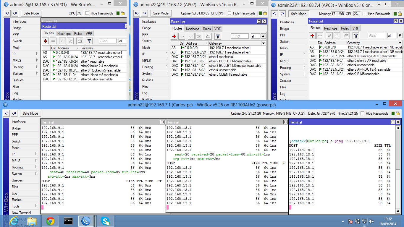 Como esta suas rotas e onde estão os gateway dos rádios?? Pensou em fazer OSPF?